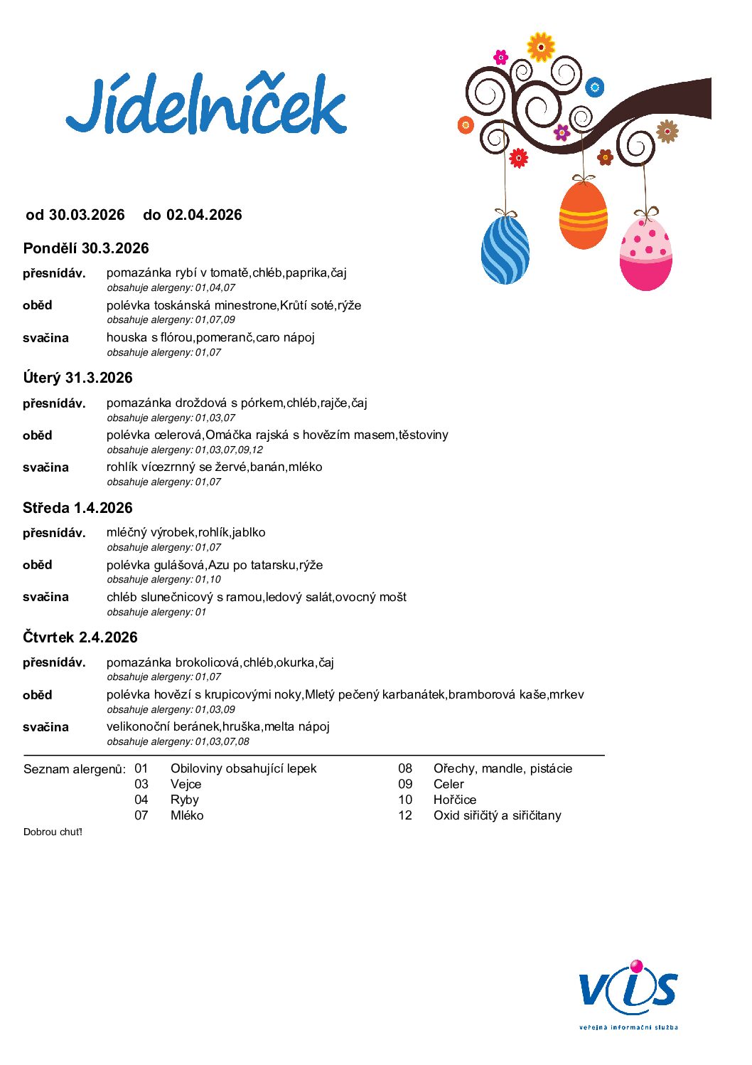 Odhlašování stravy je třeba provést do 8:30 hodin předchozího dne elektronicky, během prázdnin je možné odhlašovat na tel. čísle 702 054 258.