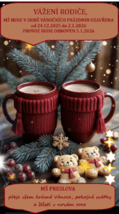 Milí rodiče, s radostí vám oznamujeme, že byla spuštěna nová aplikace Správa MŠ. Najdete na ní všechny potřebné informace a aktuality. Přihlašovací údaje obdržíte přímo od třídních učitelek. Děkujeme za trpělivost a těšíme se na spolupráci.